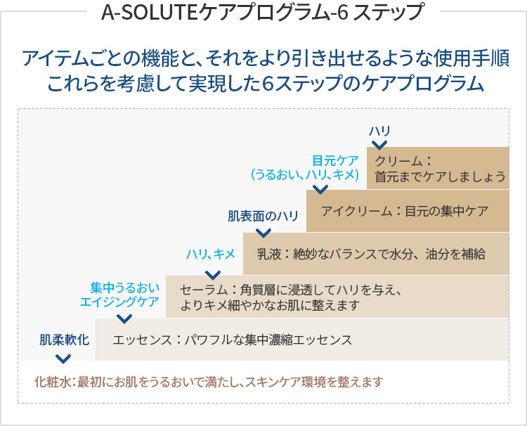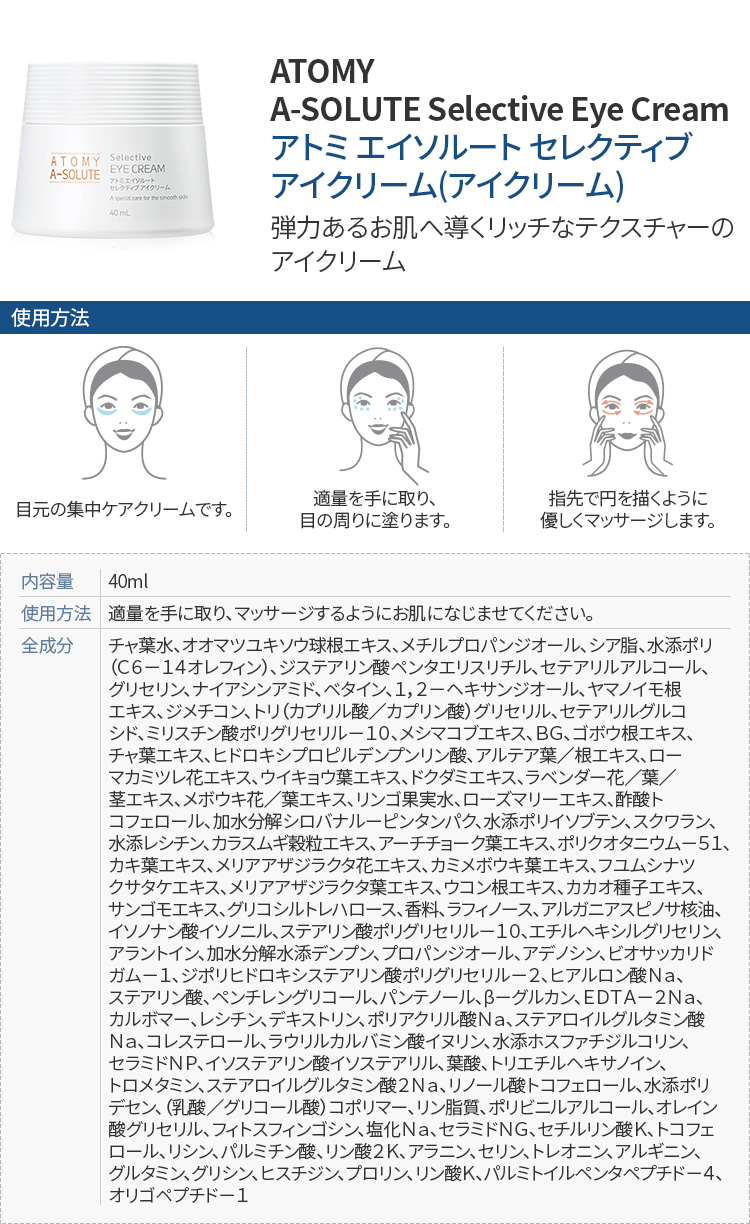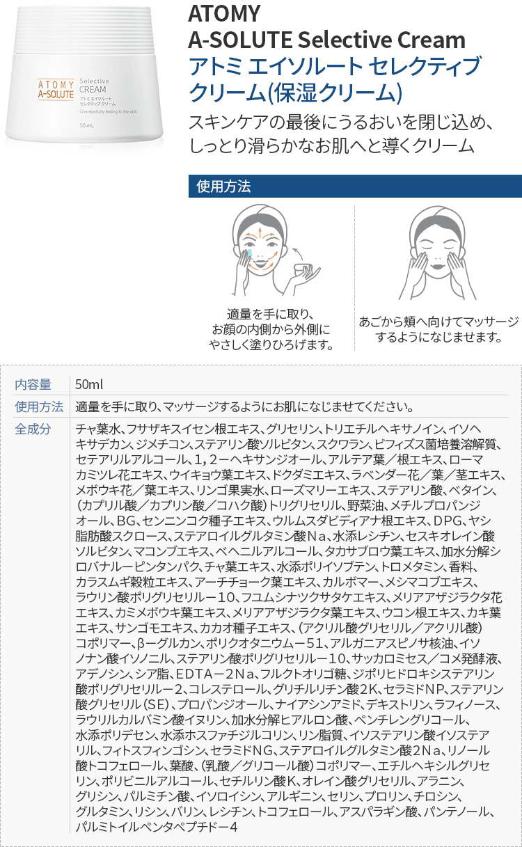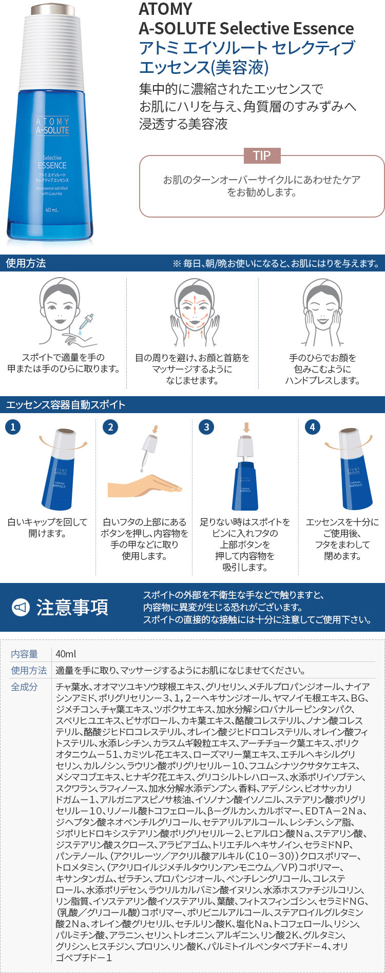 ・エイソルートセレクティブ 化粧水 150ml ・エイソルートセレクティブ エッセンス(美容液) 40ml ・エイソルートセレクティブ セーラム(美容液) 50ml ・エイソルートセレクティブ 乳液 135ml ・エイソルートセレクティブ アイクリーム 40ml |
