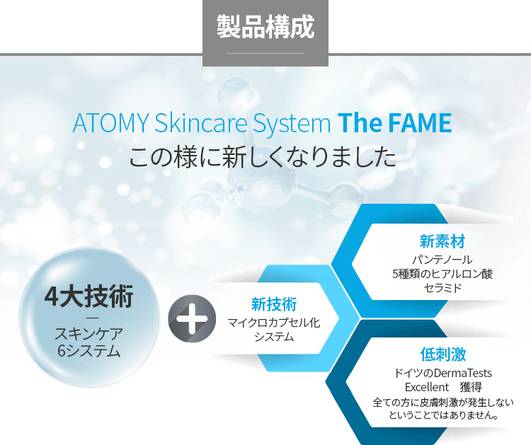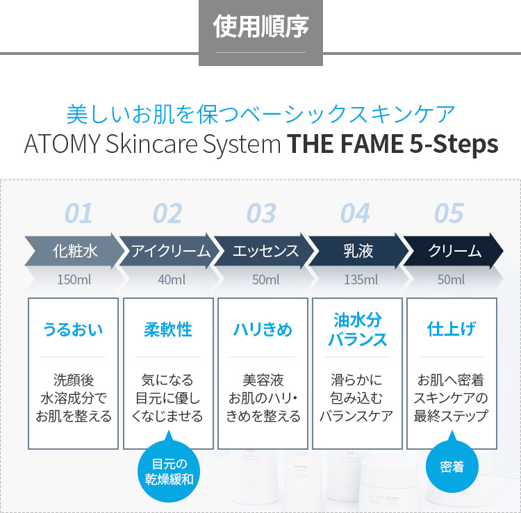 ・ザ フェイム 化粧水 150ml ・ザ フェイム アイクリーム 40ml ・ザ フェイム エッセンス 50ml ・ザ フェイム 乳液 135ml ・ザ フェイム クリーム 50ml |